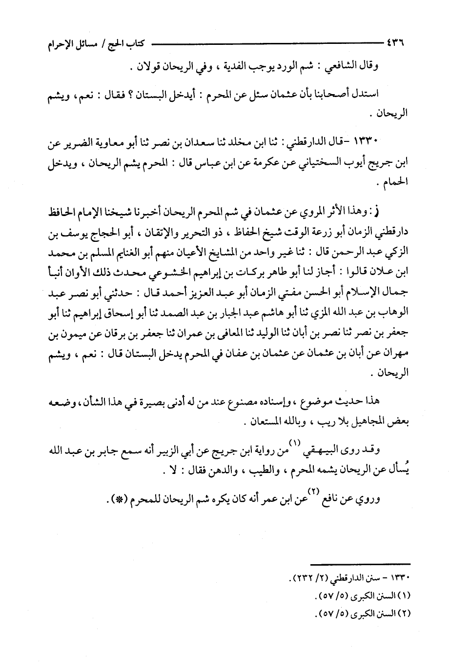 1330 - قال الدارقطني : ثنا ابن مخلد ثنا سعدان بن نصر ثنا أبو معاوية الضرير عن ابن جريج أيوب السختياني عن عكرمة عن ابن عباس قال : المحرم يشم الريحان ، ويدخل الحمام .