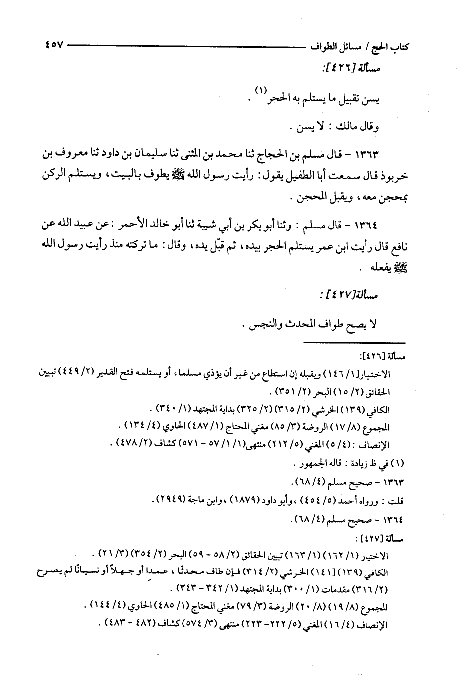 1364 - قال مسلم : وثنا أبو بكر بن أبي شيبة ثنا أبو خالد الأحمر : عن عبيد الله عن نافع قال رأيت ابن عمر يستلم الحجر بيده ، ثم قبل يده ، وقال : ما تركته منذ رأيت رسول الله يفعله .