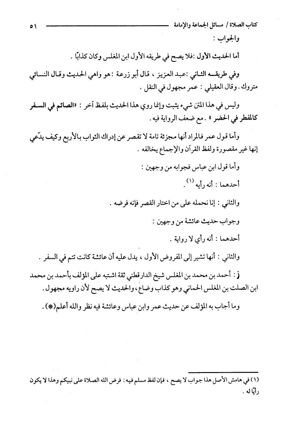 وما أجاب به المؤلف عن حديث عمر وابن عباس وعائشة فيه نظر والله أعلم .