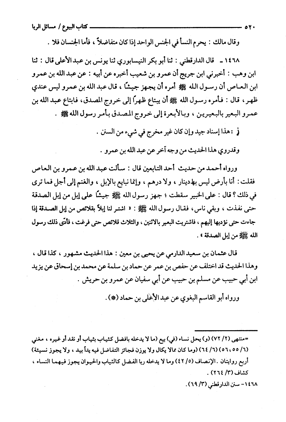 1468 - قال الدارقطني : ثنا أبو بكر النيسابوري ثنا يونس بن عبد الأعلى قال : ثنا ابن وهب : أخبرني ابن جريج أن عمرو بن شعيب أخبره عن أبيه : عن عبد الله بن عمرو ابن العاص أن رسول الله أمره أن يجهز جيشا ، قال عبد الله بن عمرو ليس عندي ظهر ، قال : فأمره رسول الله أن يبتاع ظهرا إلى خروج المصدق ، فابتاع عبد الله بن عمرو البعير بالبعيرين ، وبالأبعرة إلى خروج المصدق بأمر رسول الله .