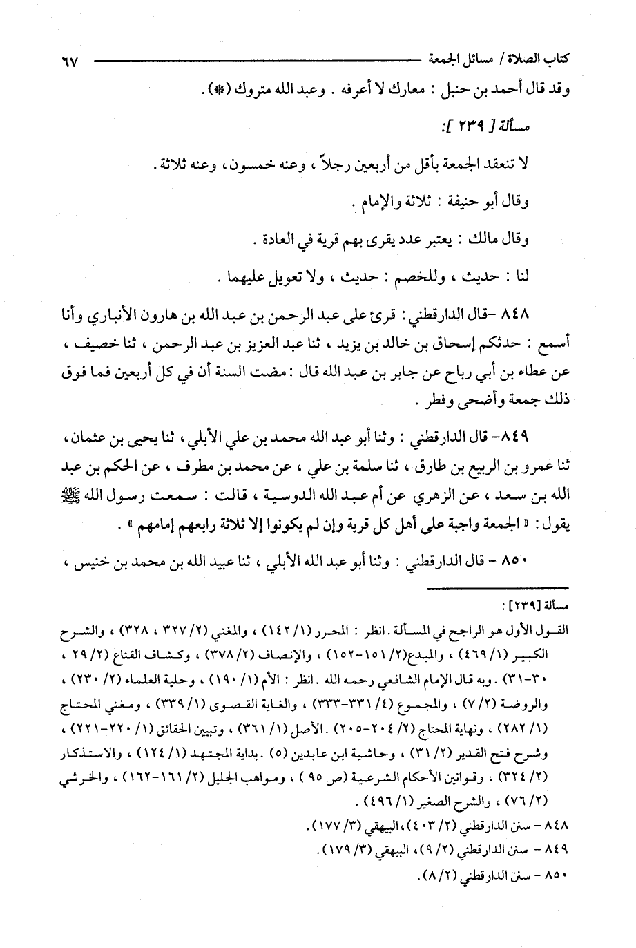 849 - قال الدارقطني : وثنا أبو عبد الله محمد بن علي الأبلي ، ثنا يحي بن عثمان ، ثنا عمرو بن الربيع بن طارق ، ثنا سلمة بن علي ، عن محمد بن مطرف ، عن الحكم بن عبد الله بن سعد ، عن الزهري عن أم عبد الله الدوسية ، قالت : سمعت رسول الله يقول : ' الجمعة واجبة على اهل كل قرية وإن لم يكونوا إلا ثلاثة رابعهم إمامهم ' .