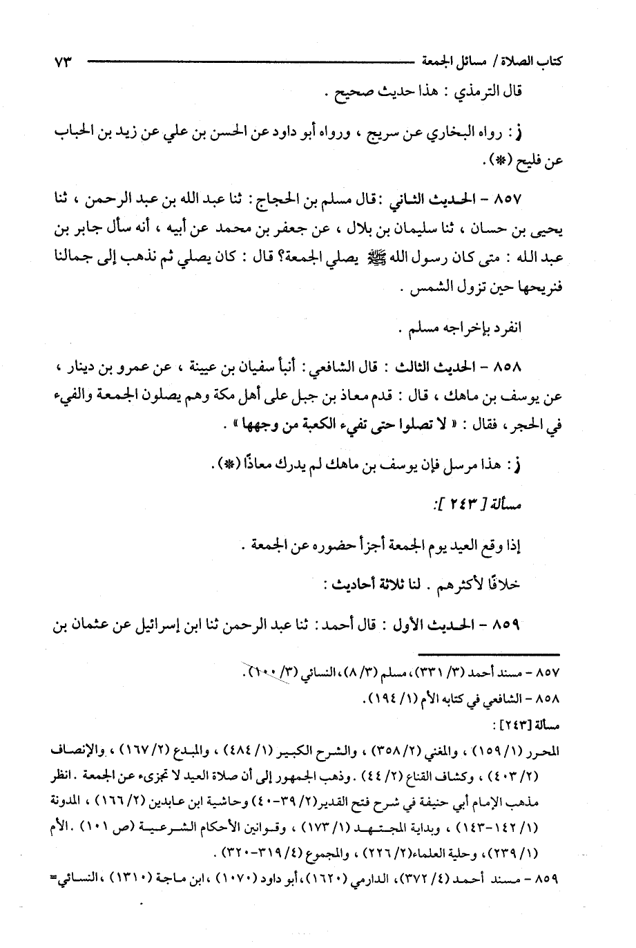 8557 - الحديث الثاني : قال مسلم بن الحجاج : ثنا عبد الله بن عبد الرحمن ، ثنا يحي بن حسان ، ثنا سليمان بن بلال ، عن جعفر بن محمد عن أبيه ، أنه سأل جابر بن عبد الله : متى كان رسول الله يصلي الجمعة ؟ قال : كان يصلي ثم نذهب إلى جمالنا فتريحها حين تزول الشمس .