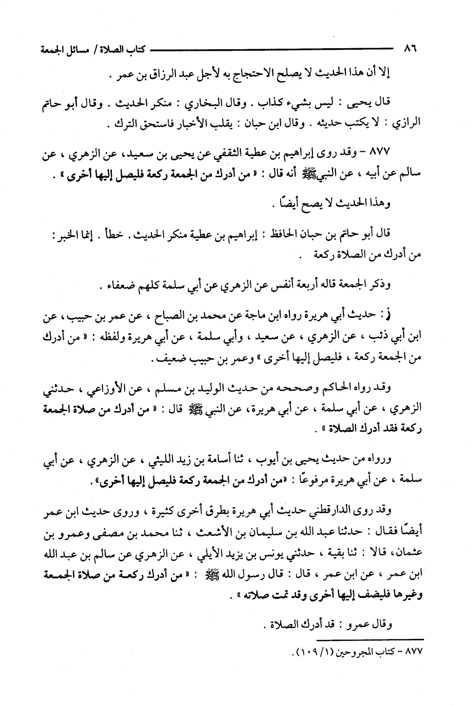 877 - وقد روى إبراهيم بن عطية الثقفي عن يحي بن سعيد ، عن الزهري ، عن سالم عن أبيه ، عن النبي أنه قال : : من أدرك من الجمعة ركعة فليصل إليها أخرى ' .