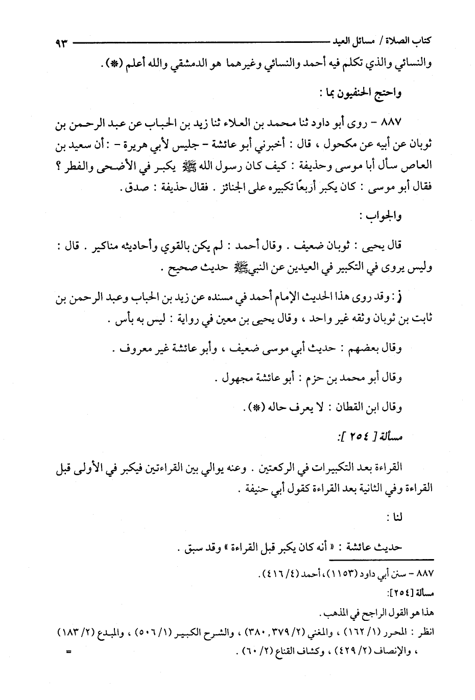 887 - روى أبو داود ثنا محمد بن العلاء ثنا زيد بن الحباب عن عبد الرحمن بن ثوبان عن أبيه عن مكحول ، قال : أخبرني أبو عائشة - جليس لأبي هريرة - ك أن سعيد بن العاص سأل أبا موسى وحذيفة : كيف كان رسول الله يكبر في الأضحى والفطر ؟ فقال أبو موسى : كان يكبر أربعا تكبيره على الجنائز .