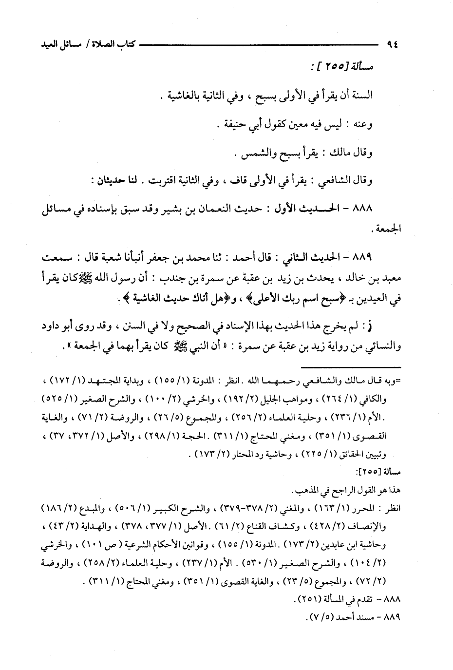 889 - الحديث الثاني : قال أحمد : ثنا محمد بن جعفر أنبأنا شعبة قال : سمعت معبد بن خالد ، يحدث بن زيد بن عقبة عن سمرة بن جندب : أن رسول الله كان يقرأ في العيدين ب ( ^ سبح اسم ربك الأعلى ) ، و ( ^ هل أتاك حديث الغاشية ) .