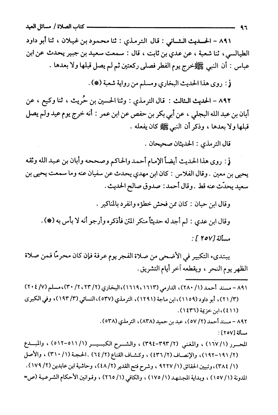 892 - الحديث الثالث : قال الترمذي : وثنا الحسين بن حريث ، ثنا وكيع ، عن أبان بن عبد الله البجلي ، عن أبي بكر بن حفص عن ابن عمر : أنه خرج يوم عيد ولم يصل قبلها ولا بعدها ، وذكر أن النبي كان يفعله .