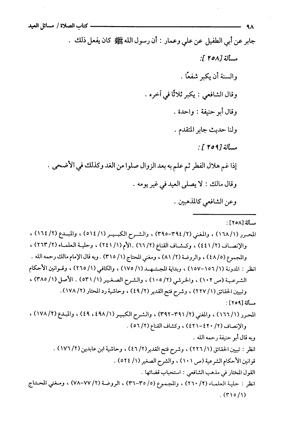 وقال الشافعي : يكبر ثلاثا في آخره .