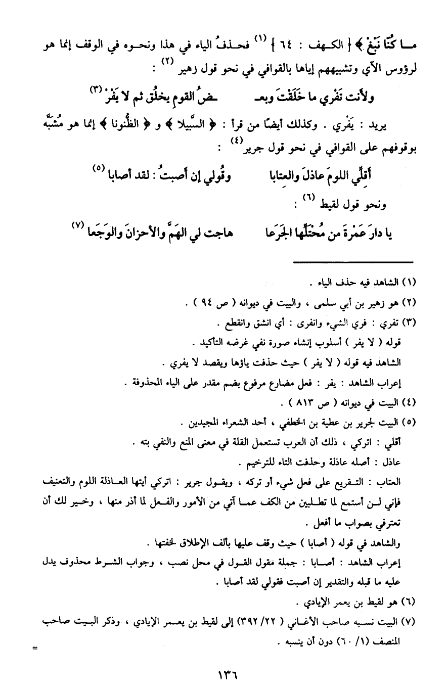 مَا كُنَّا نَبْغِ} [الكهف: 64] 1 فحذف الياء في هذا ونحوه في الوقف إنما هو لرءوس الآي وتشبيههم إياها بالقوافي في نحو قول زهير2: