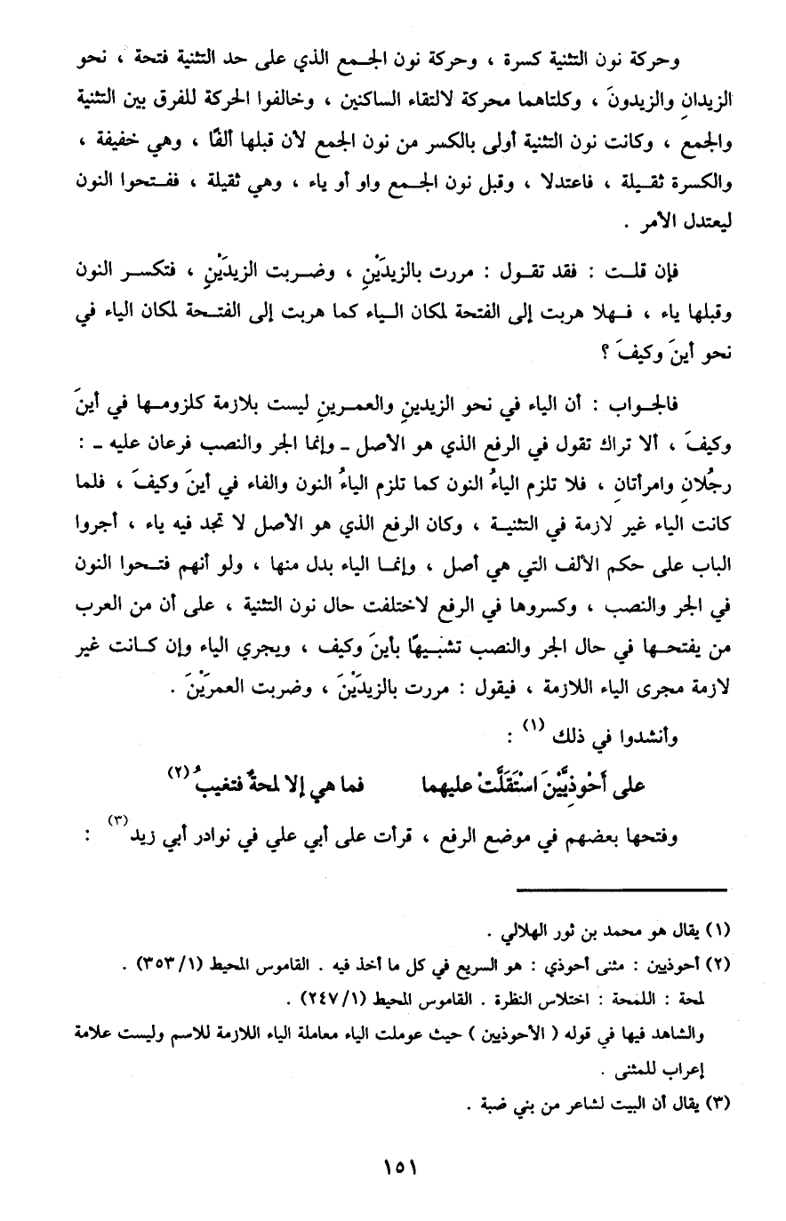 والشاهد فيها في قوله "أَحْوذِيَّيْنَ" حيث عوملت الياء معاملة الياء اللازمة للاسم وليست علامة إعراب للمثنى.