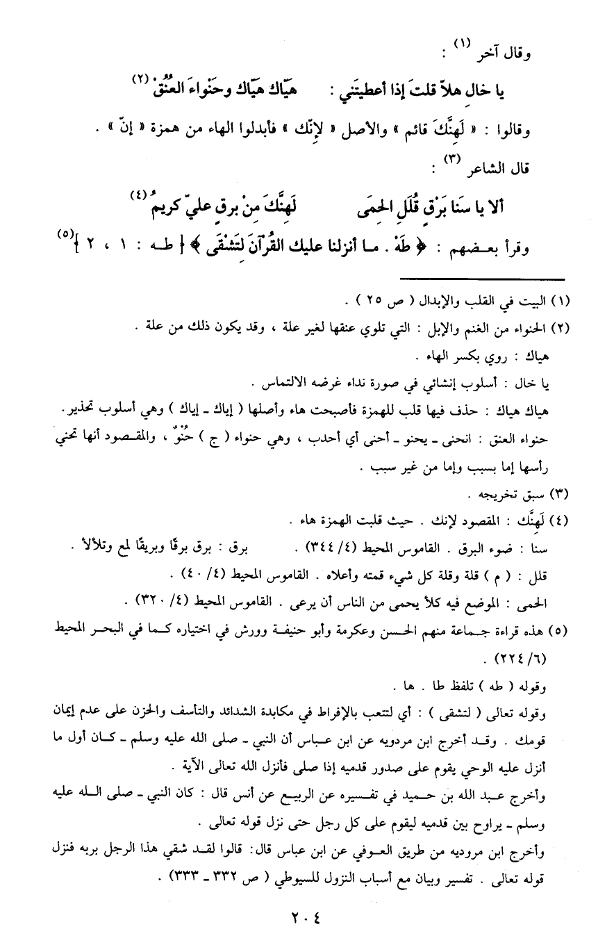4 لهنك: المقصود لإنك. حيث قلبت الهمزة هاء.