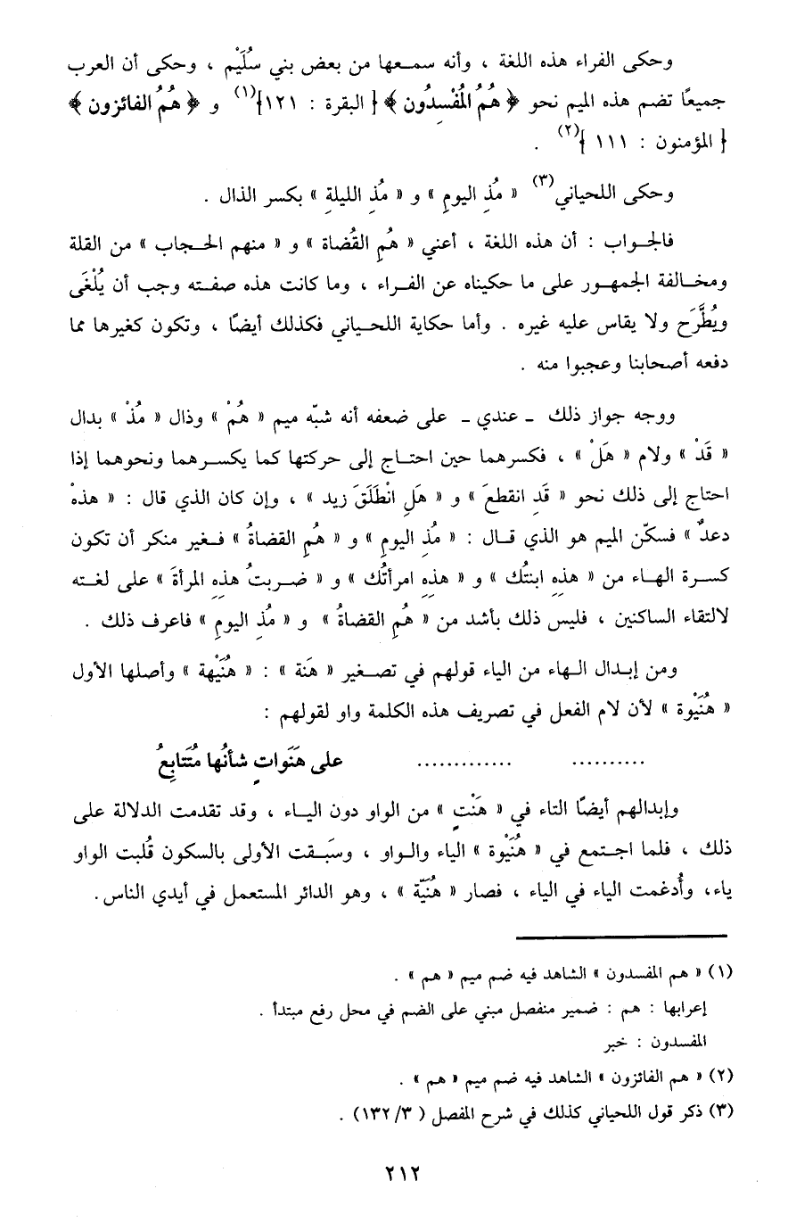وحكى الفراء هذه اللغة، وأنه سمعها من بعض بني سليم، وحكى أن العرب جميعًا تضم هذه الميم نحو {هُمُ الْمُفْسِدُونَ} [البقرة: 12] 1 و {هُمُ الْفَائِزُونَ} [المؤمنون: 111] 2.