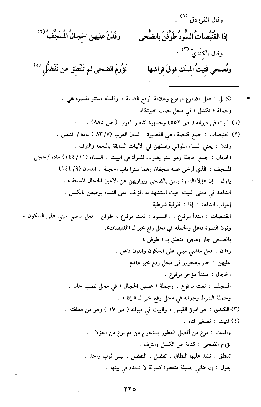 3 الكندي: هو امرؤ القيس، والبيت في ديوانه "ص17" وهو من معلقته.