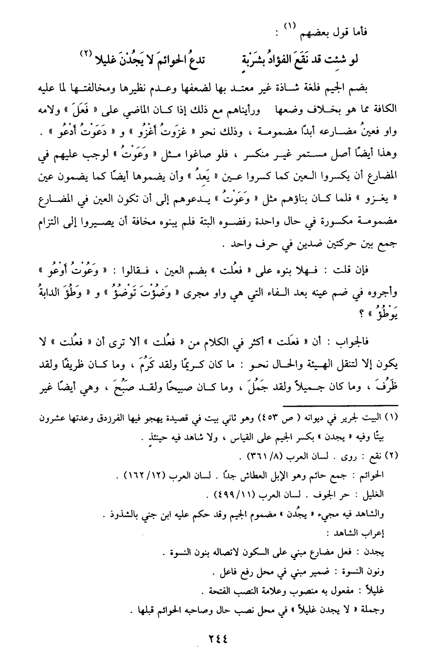 والشاهد فيه مجيء "يجُدن" مضموم الجيم وقد حكم عليه ابن جني بالشذوذ.
