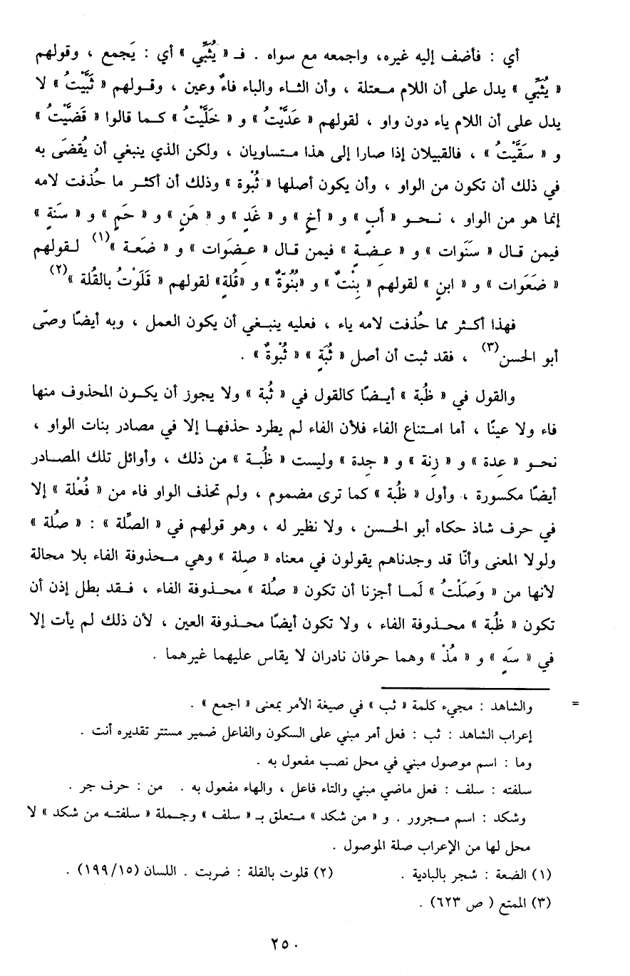 فهذا أكثر مما حذفت لامه ياء، فعليه ينبغي أن يكون العمل، وبه أيضًا وصى أبو الحسن3، فقد ثبت أن أصل "ثبة" "ثبوة".