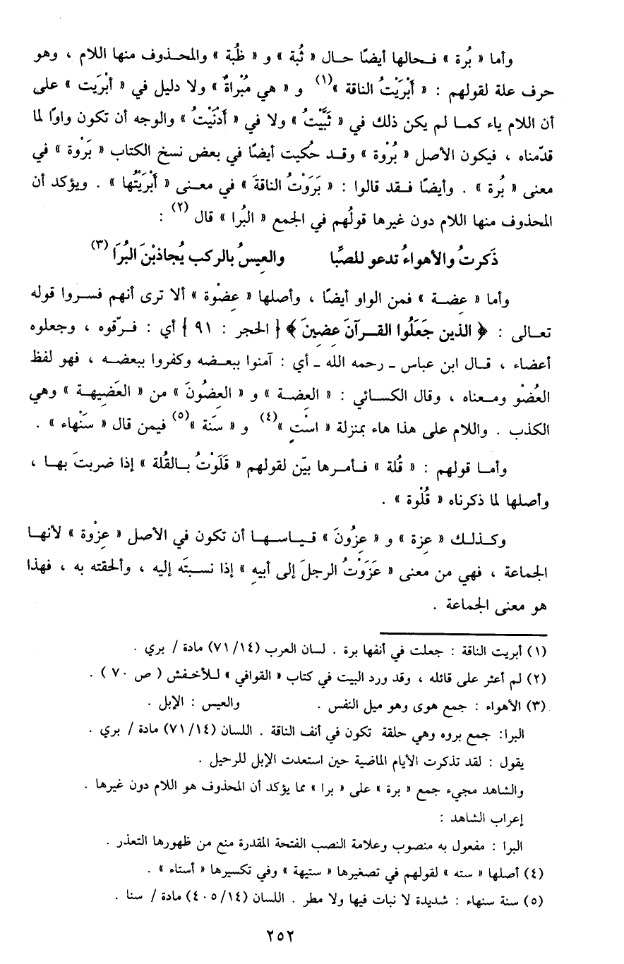 والشاهد مجيء جمع "برة" على "برا" مما يؤكد أن المحذوف هو اللام دون غيرها.