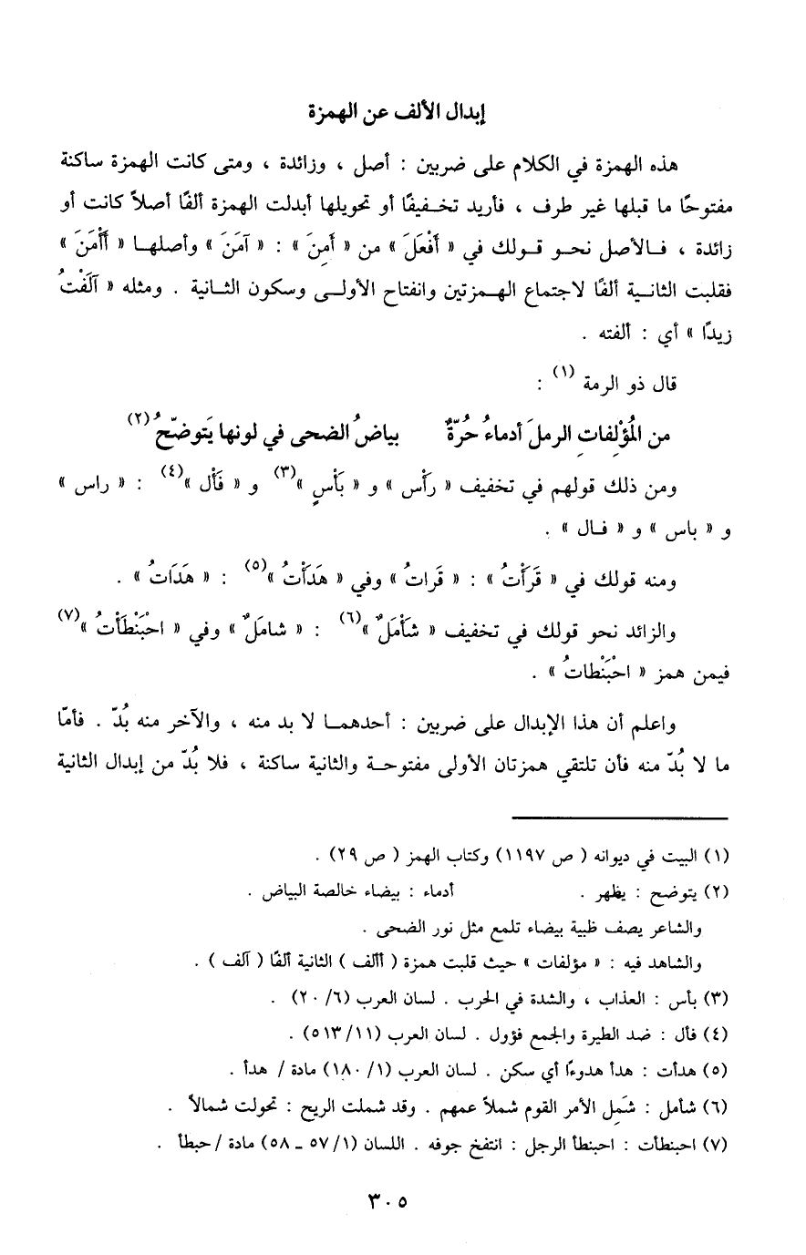 والشاهد فيه: مؤلفات" حيث قلبت همزة "أألف" الثانية ألف "آلف".