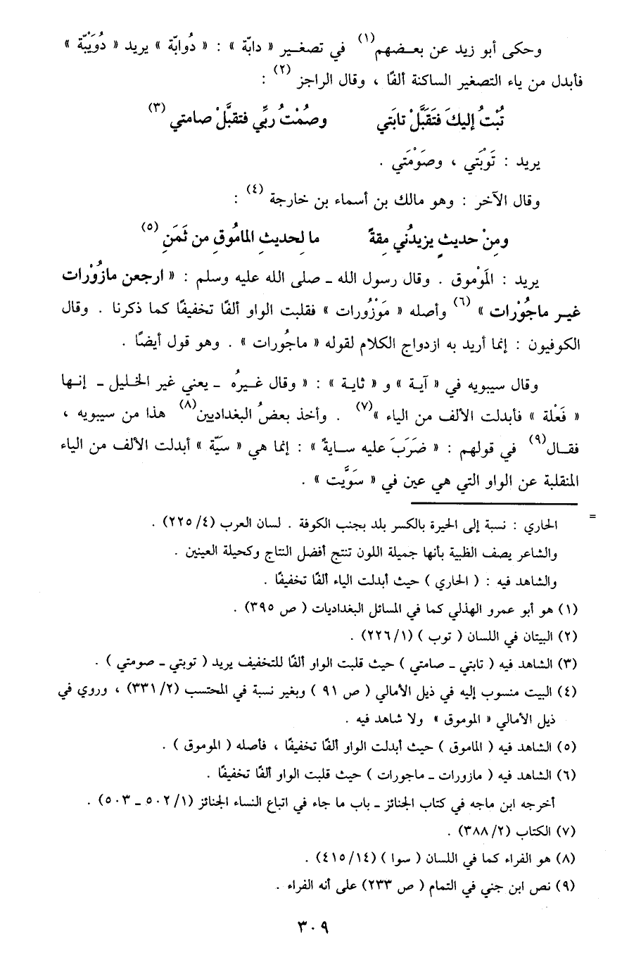 6 الشاهد فيه "مازورات -ماجورات" حيث قلبت الواو ألفا تخفيفا.