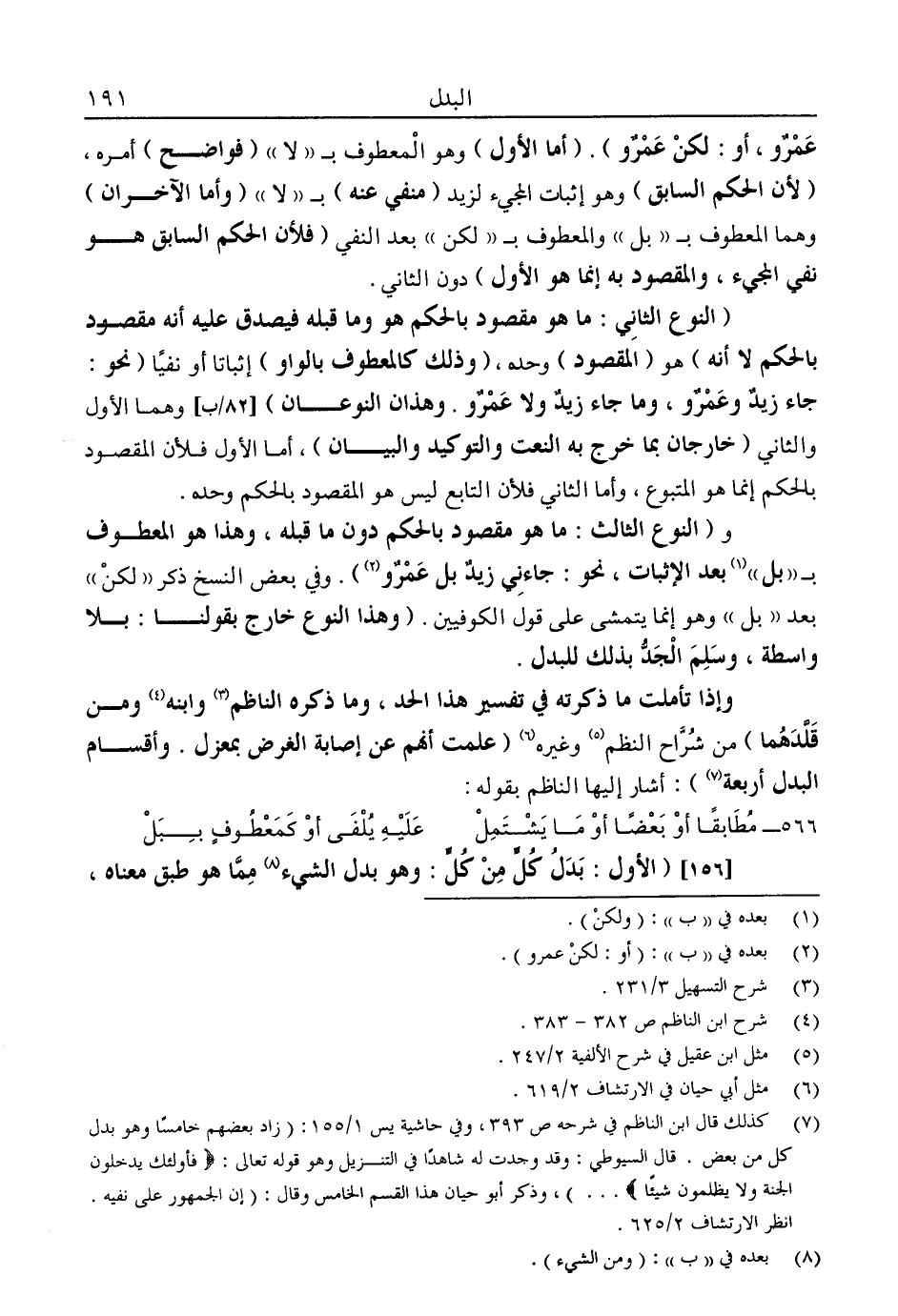 7 كذلك قال ابن الناظم في شرحه ص393، وفي حاشية يس 1/ 155: "زاد بعضهم خامسًا وهو بدل كل من بعض. قال السيوطي: وقد وجدت له شاهدًا في التنزيل وهو قوله تعالى: {فَأُولَئِكَ يَدْخُلُونَ الْجَنَّةَ وَلَا يُظْلَمُونَ شَيْئًا} ... ", وذكر أبو حيان هذا القسم الخامس وقال: "إن الجمهور على نفيه. انظر الارتشاف 2/ 625.
