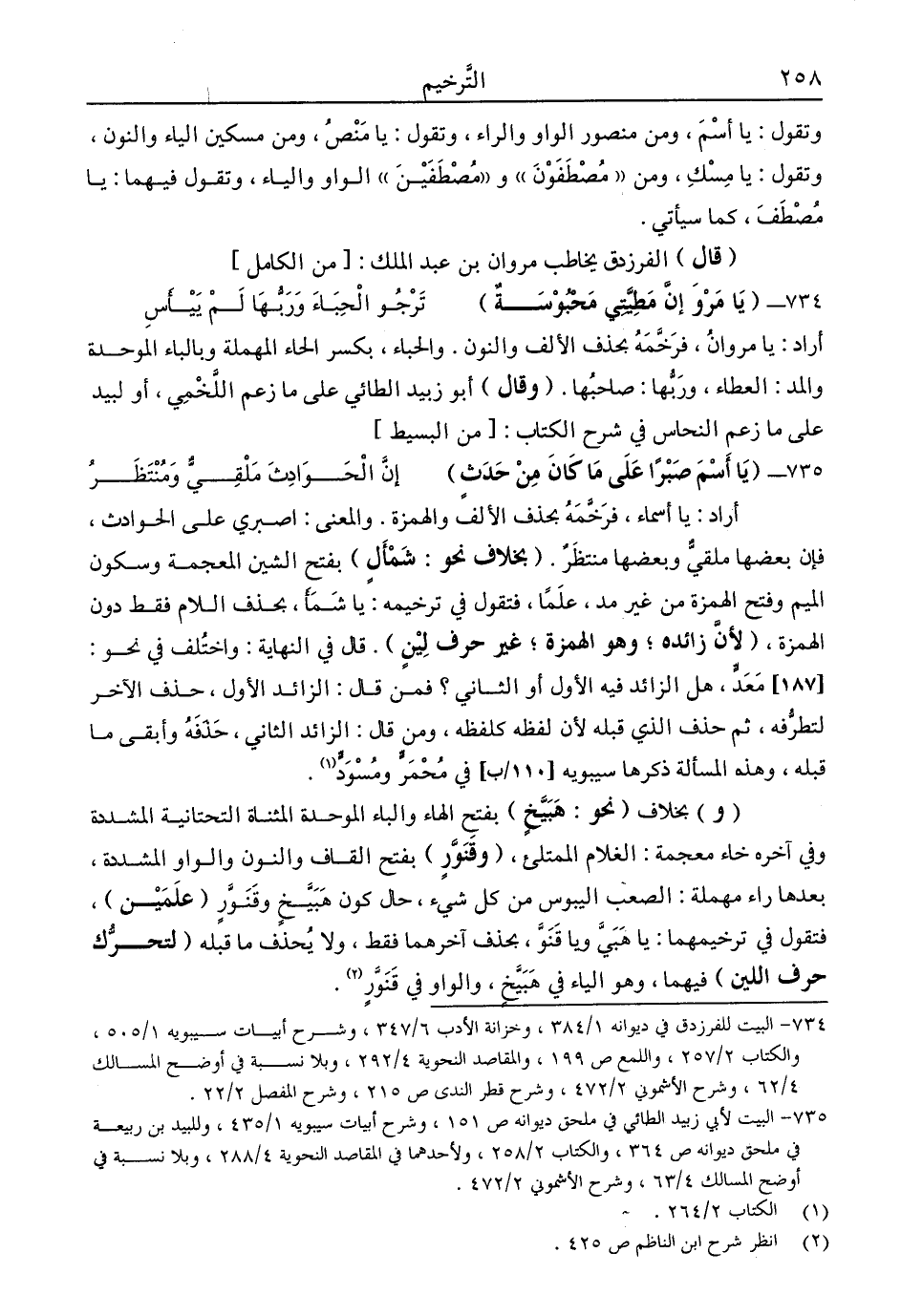 734- البيت للفرزدق في ديوانه 1/ 384، وخزانة الأدب 6/ 347، وشرح أبيات سيبويه 1/ 505، والكتاب 2/ 257، واللمع ص199، والمقاصد النحوية 4/ 292، وبلا نسبة في أوضح المسالك 4/ 62، وشرح الأشموني 2/ 472، وشرح قطر الندى ص215، وشرح المفصل 2/ 22.