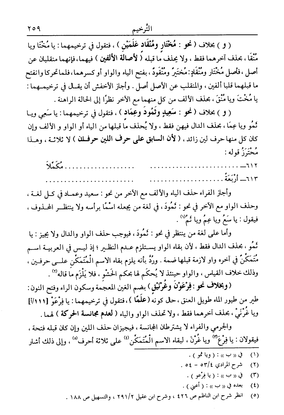 5 انظر شرح ابن الناظم ص426، وشرح ابن عقيل 2/ 291، والتسهيل ص188.