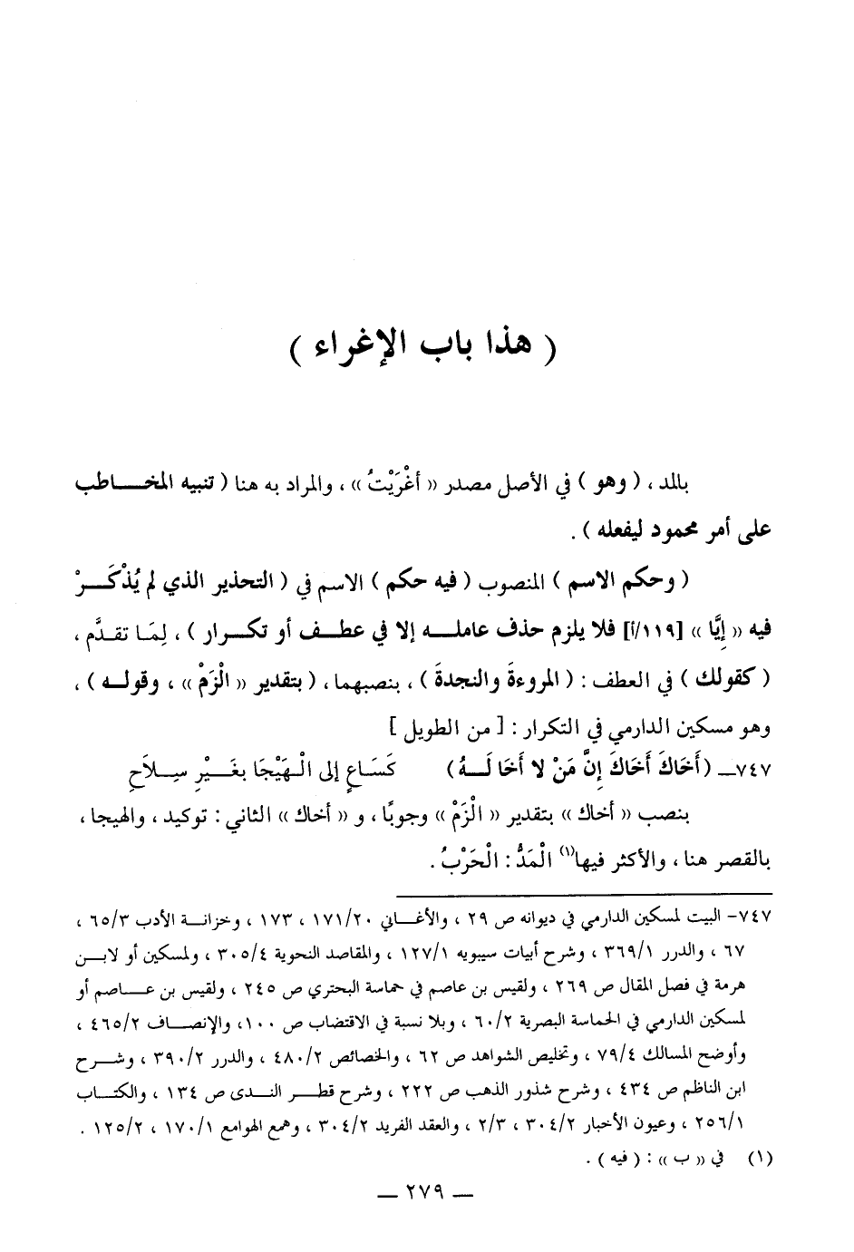 747- البيت لمسكين الدارمي في ديوانه ص29؛ والأغاني 20/ 171، 173، وخزانة الأدب 3/ 65، 67، والدرر 1/ 369، وشرح أبيات سيبويه 1/ 127، والمقاصد النحوية 4/ 305، ولمسكين أو لابن هرمة في فصل المقال ص269، ولقيس بن عاصم في حماسة البحتري ص245، ولقيس بن عاصم أو لمسكين الدرامي في الحماسة البصرية 2/ 60، وبلا نسبة في الاقتضاب ص100، والإنصاف 2/ 465, وأوضح المسالك 4/ 79، وتلخيص الشواهد ص62، والخصائص 2/ 480، والدرر 2/ 390، وشرح وابن الناظم ص434، وشرح شذور الذهب ص222، وشرح قطر الندى ص134، والكتاب 1/ 256، وعيون الأخبار 2/ 304، 3/ 2، والعقد الفريد 2/ 304، وهمع الهوامع 1/ 170، 2/ 125.
