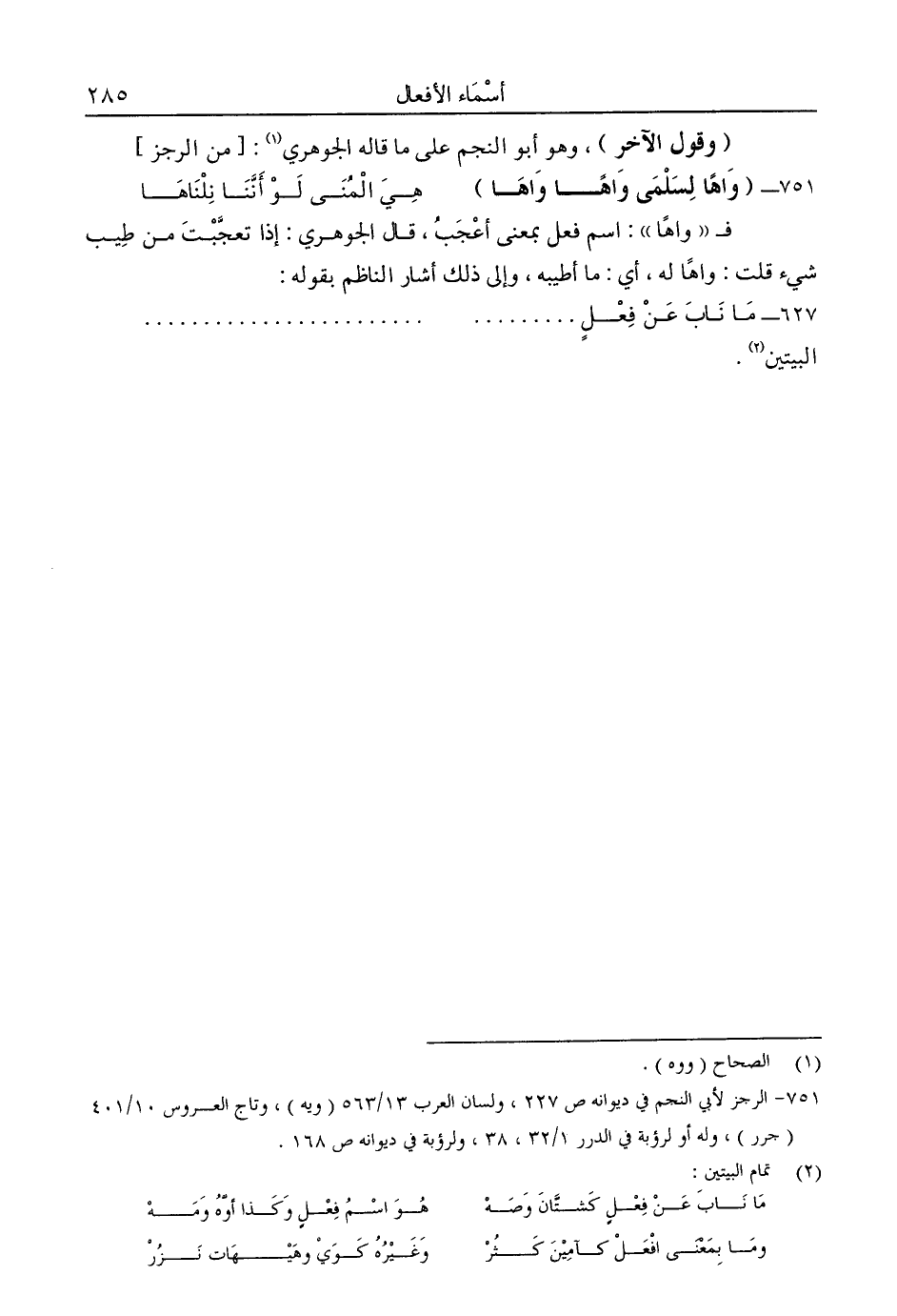 751- الرجز لأبي النجم في ديوانه ص227، ولسان العرب 13/ 563 "ويه"، وتاج العروس 10/ 401 "جرر"، وله أو لرؤبة في الدرر 1/ 32، ولرؤبة في ديوانه ص168.