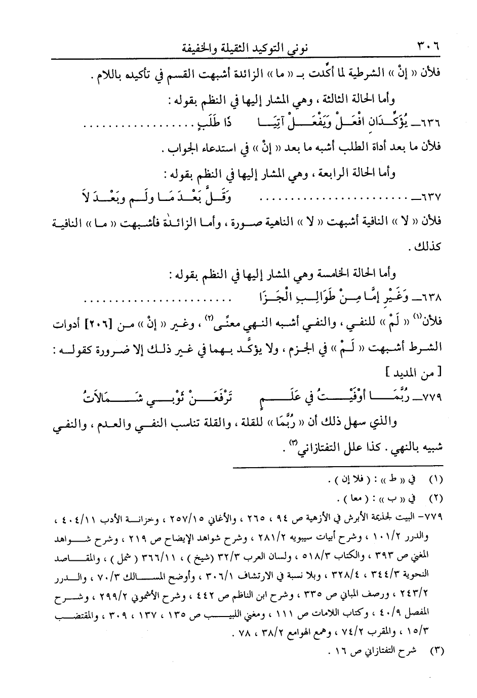 فلأن1 "لم" للنفي، والنفي أشبه النهي معنى2، وغير "إن" من أدوات الشرط أشبهت "لم" في الجزم، ولا يؤكد بهما في غير ذلك إلا ضرورة كقوله: [من المديد]
