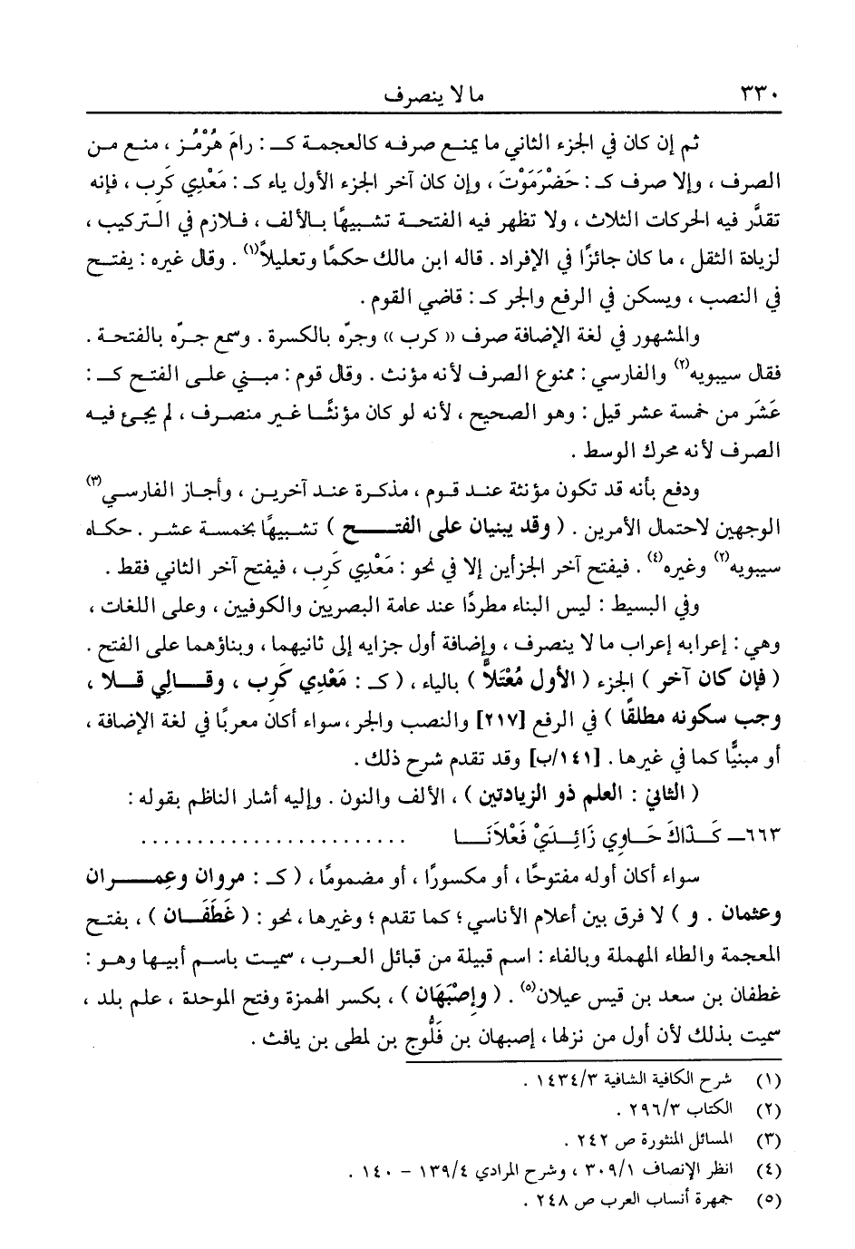 4 انظر الإنصاف 1/ 309، وشرح المرادي 4/ 139-140.