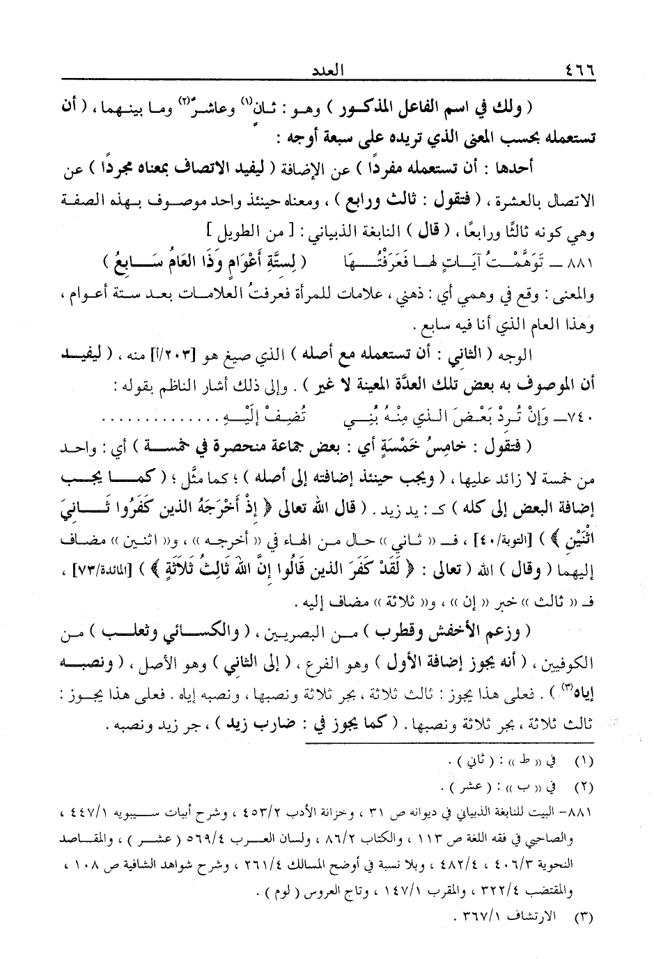 881- البيت للنابغة الذبياني في ديوانه ص31، وخزانة الأدب 2/ 453، وشرح أبيات سيبويه 1/ 447، والصاحبي في فقه اللغة ص113، والكتاب 2/ 86، ولسان العرب 4/ 569 "عشر"؛ والمقاصد النحوية 3/ 406، 4/ 482، وبلا نسبة في أوضح المسالك 4/ 261، وشرح شواهد الشافية ص108، والمقتضب 4/ 422، والمقرب، وتاج العروس "لوم".