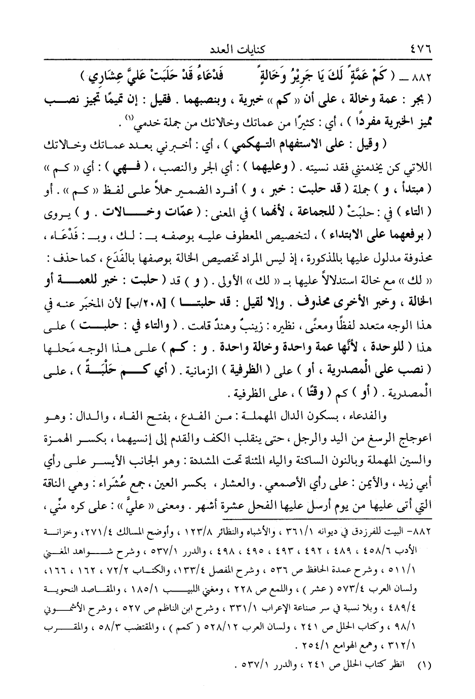 882- البيت للفرزدق في ديوانه 1/ 361، والأشباه والنظائر 8/ 123، وأوضح المسالك 4/ 271، وخزانة الأدب 6/ 458، 459، 493، 495، 498، والدرر 1/ 537، وشرح شواهد المغني 14/ 511، وشرح عمدة الحافظ ص536، وشرح المفصل 4/ 133، والكتاب 2/ 72، 162، 166، ولسان العرب 4/ 573 "عشر" واللمع ص228، ومغني اللبيب 1/ 185، والمقاصد النحوية 4/ 489، وبلا نسبة في سر صناعة الإعراب 1/ 331، وشرح ابن الناظم ص527، وشرح الأشموني 1/ 98، وكتاب الحلل ص241، ولسان العرب 12/ 528 "كمم"، والمتقضب 3/ 58، والمقرب 1/ 312، وهمع الهوامع 1/ 254.