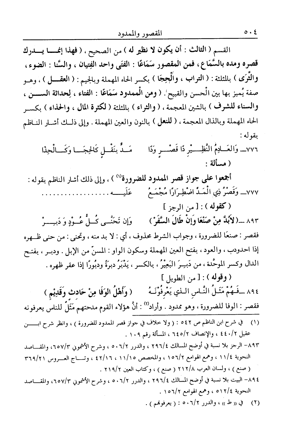1 في شرح ابن الناظم ص542: "ولا خلاف في جواز قصر الممدود للضرورة"، وانظر شرح ابن عقيل 2/ 440، والإنصاف 2/ 645، المسألة رقم 109.