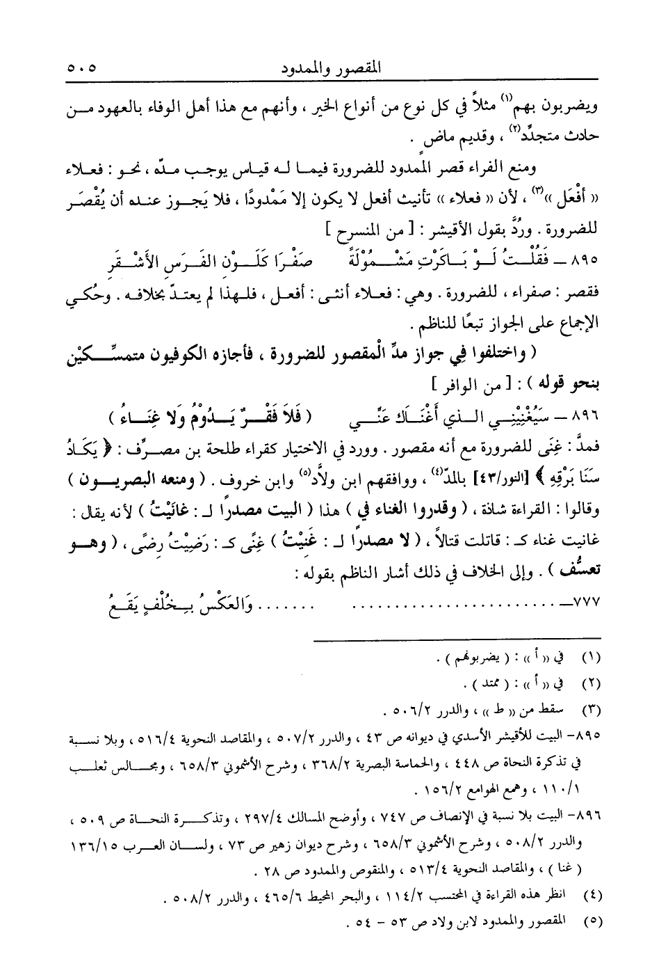 5 المقصور والممدود لابن ولاد ص53-54.