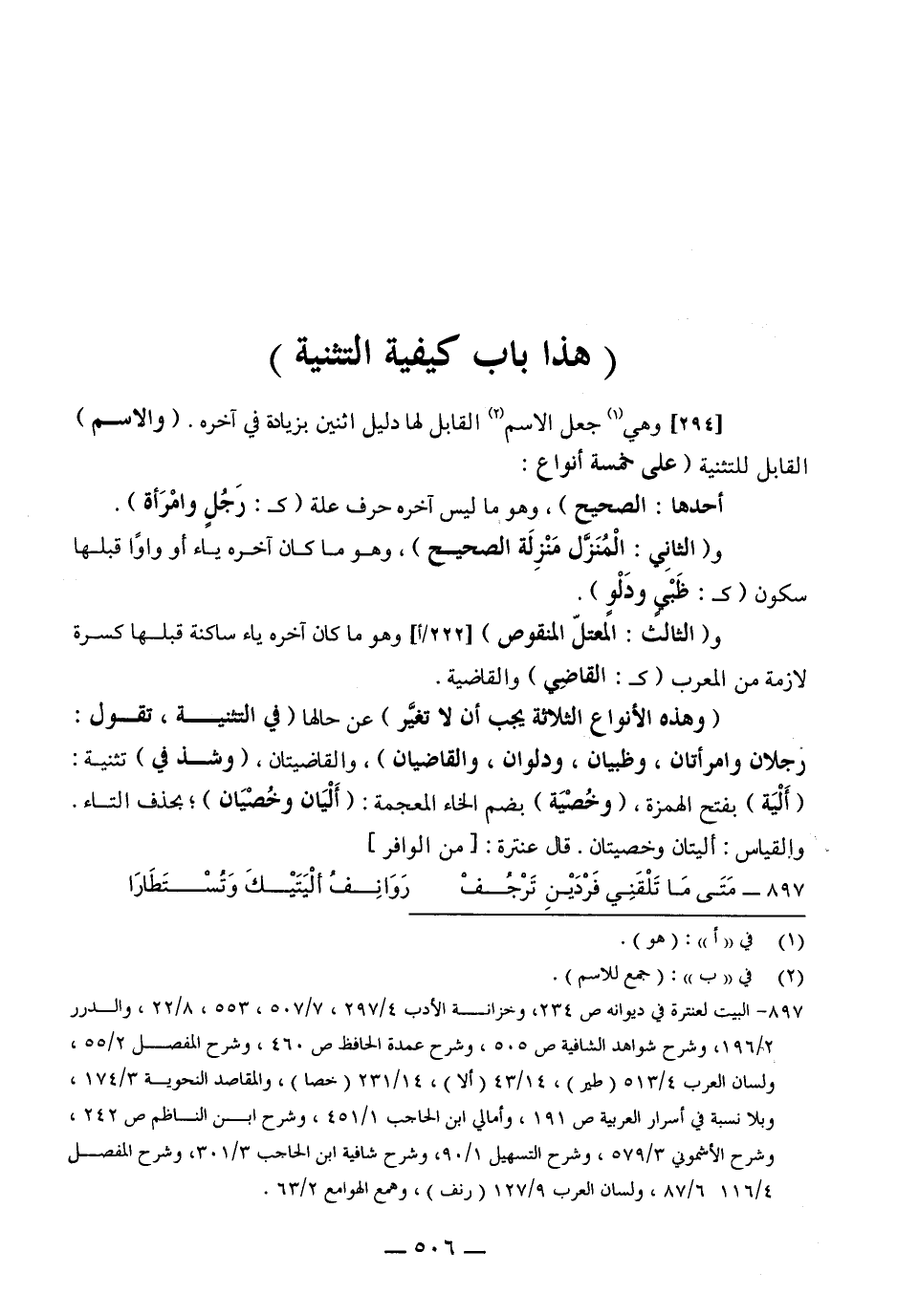 وهي1 جعل الاسم2 القابل لها دليل اثنين بزيادة في آخره. "والاسم" القابل للتثنية "على خمس أنواع: