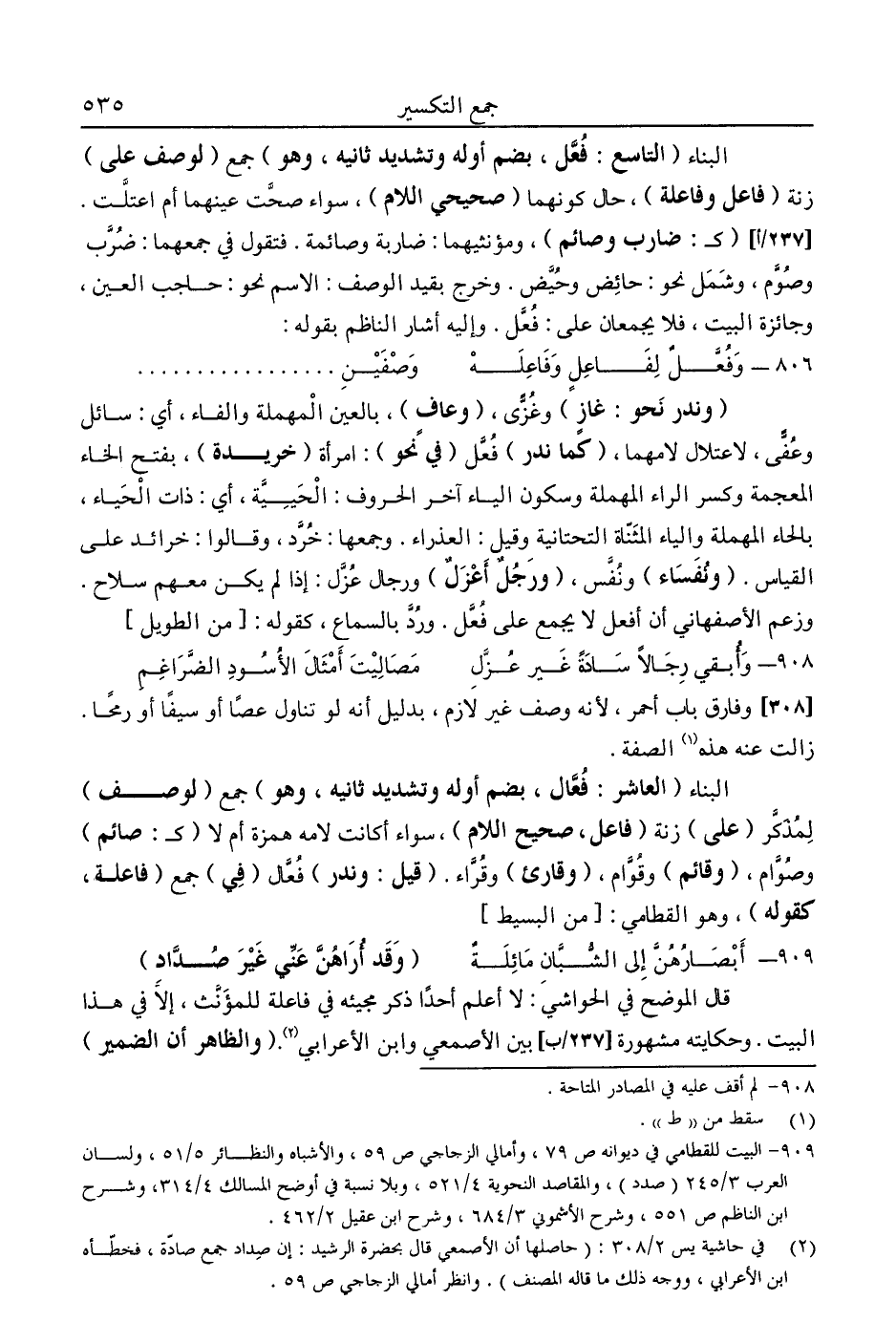 2 في حاشية يس 2/ 308: "حاصلها أن الأصمعي قال بحضرة الرشيد: إن صداد جمع صادة، فخطأه ابن الأعرابي، ووجه ذلك ما قاله المصنف". وانظر أمالي الزجاجي ص59.
