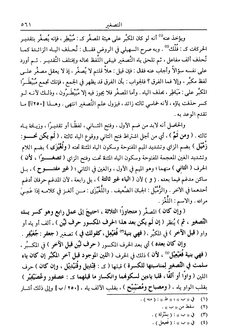 "وإن كان" المصغر "متجاوزًا الثلاثة:، احتيج إلى عمل رابع وهو كسر ياء التصغير، ثم" ينظر "إن لم يكن بعد هذا الحرف المكسور حرف لين". ألف أو ياء أو واو "قبل الآخر" في المكبر، "فهي بنية3 فعيعل، كقولك في" تصغير "جعفر: جعيفر.