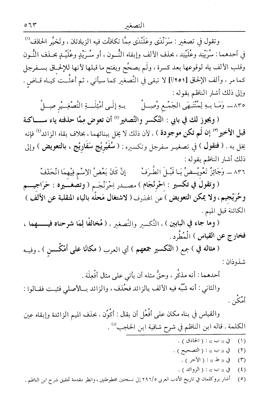 5 أشار بروكلمان في تاريخ الأدب العربي 5/ 296 إلى نسختين مخطوطتين، وانظر مقدمة تحقيق شرح ابن الناظم.