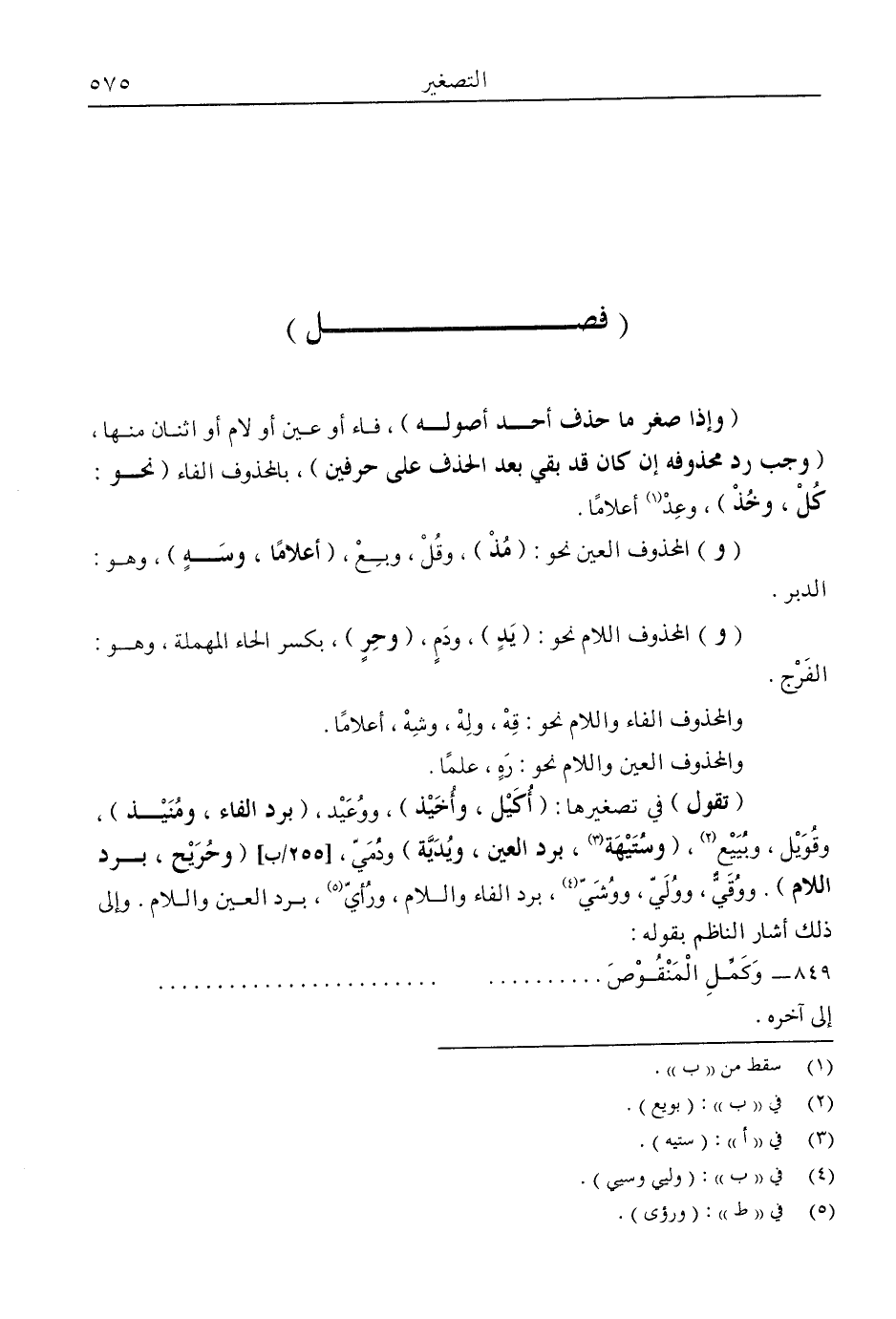 "تقول" في تصغيرها: "أكيل، وأخيذ"، ووعيد، "برد الفاء، ومنيذ" وقويل، وبييع2، "وستيهة3، برد العين، ويدية" ودمي، "وحريج، برد اللام" ووقي، وولي، ووشي4 برد الفاء واللام ورأي5 برد العين واللام، وإلى ذلك أشار الناظم بقوله: