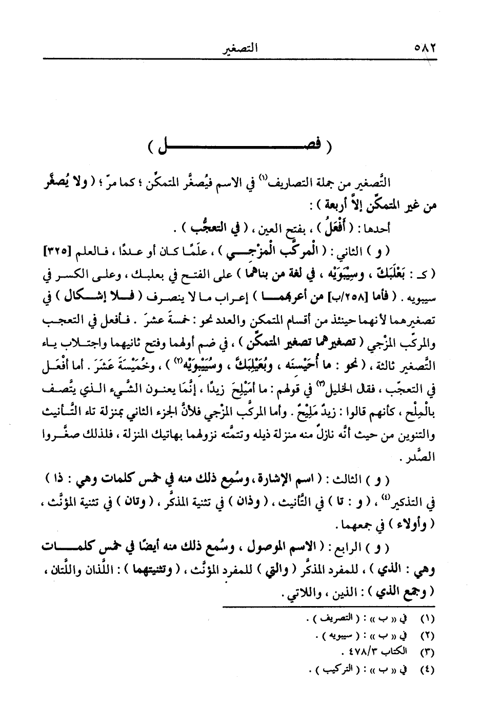 التصغير من جملة التصاريف1 في الاسم فيصغر المتمكن؛ كما مر؛ "ولا يصغر من غير المتمكن إلا أربعة":