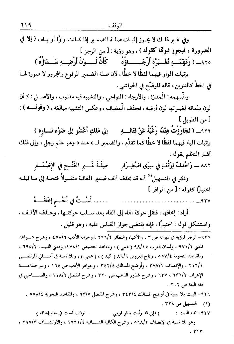 وفي غير ذلك لا يجوز إثبات صلة الضمير إذا كانت واوًا أو ياء، "إلا في الضرورة، فيجوز ثبوتها كقوله"، وهو رؤبة: [من الرجز] .