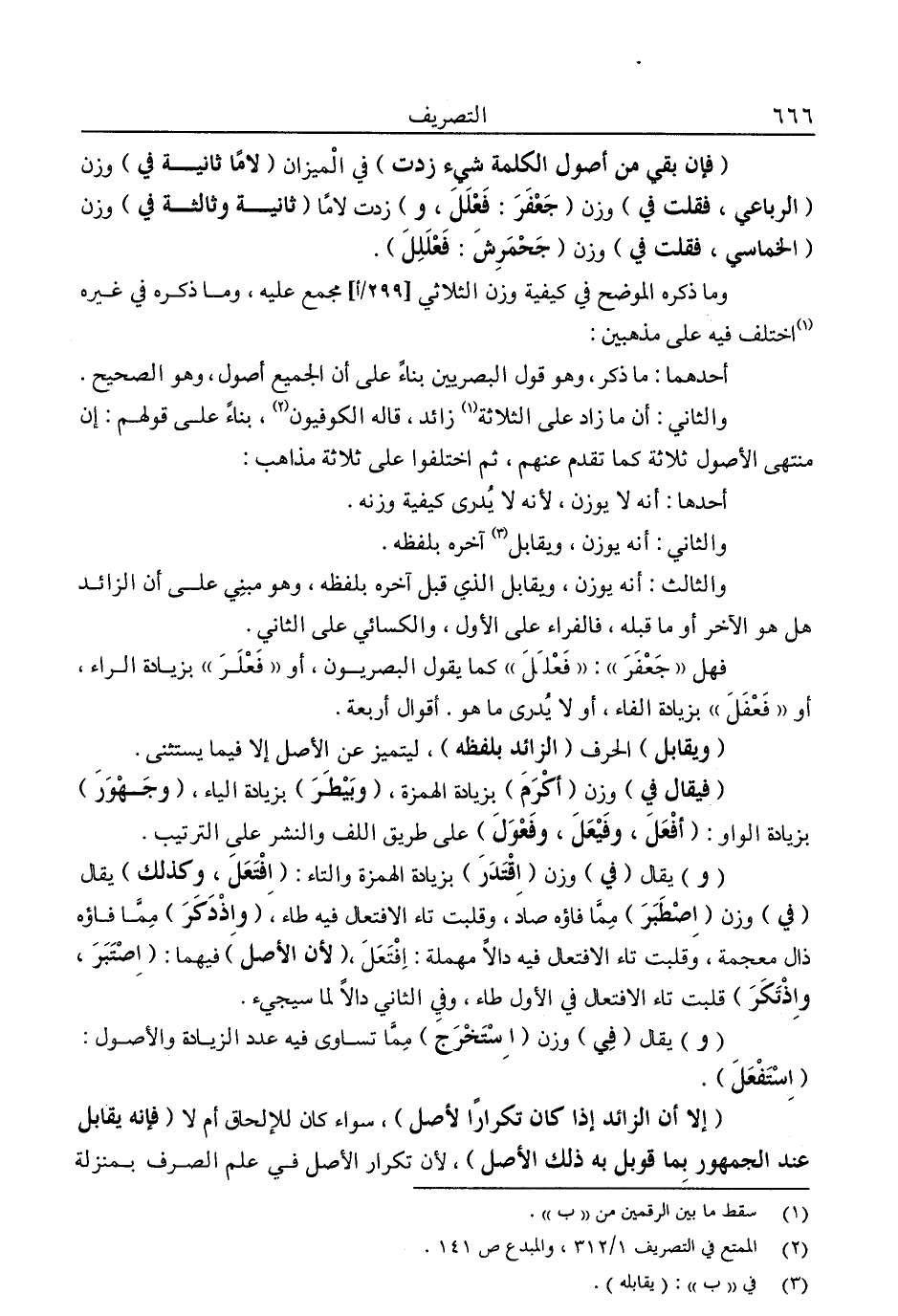 "إلا أن الزائد إذا كان تكرارًا لأصل"، سواء كان للإلحاق أم لا "فإنه يقابل عند الجمهور بما قوبل به ذلك الأصل"، لأن تكرار الأصل في علم الصرف بمنزلة