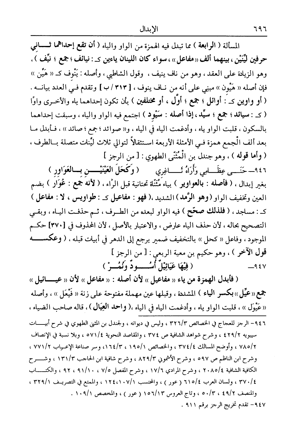 946- الرجز للعجاج في الخصائص 3/ 326، وليس في ديوانه ولجندل بن المثنى الطهوري في شرح أبيات سيبويه 2/ 429، وشرح شواهد الشافية ص374، والمقاصد النحوية 4/ 571، وبلا نسبة في الإنصاف 2/ 785، وأوضح المسالك 4/ 374، والخصائص 1/ 195، 3/ 164، وسر صناعة الإعراب 2/ 771، وشرح ابن الناظم ص597، وشرح الأشموني 3/ 829، وشرح شافية ابن الحاجب 3/ 131، وشرح الكافية الشافية 4/ 2085، وشرح المرادي 6/ 17, وشرح المفصل 5/ 7، 10/ 91، 92، والكتاب 4/ 370، ولسان العرب 4/ 615، "عور" والمحتسب 1/ 107، 124 والممتع في التصريف 1/ 329 والمنصف 2/ 49، 3/ 50، وتاج العروس 13/ 156 "عور", والمخصص 1/ 109.