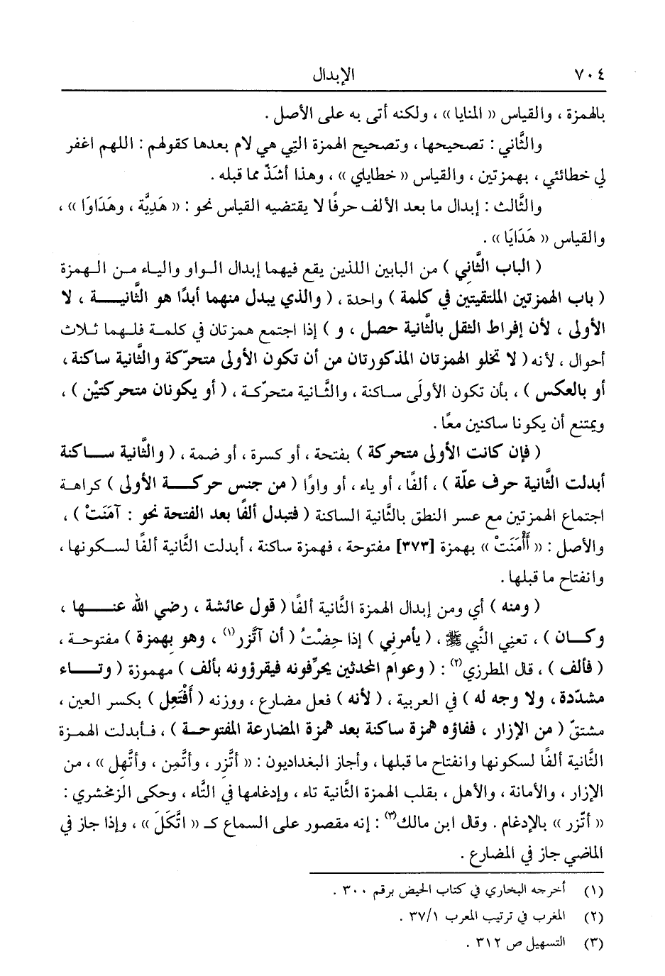 والثاني: تصحيحها، وتصحيح الهمزة التي هي لام بعدها كقولهم: اللهم اغفر لي خطائئي, بهمزتين، والقياس "خطاياي"، وهذا أشذ مما قبله.