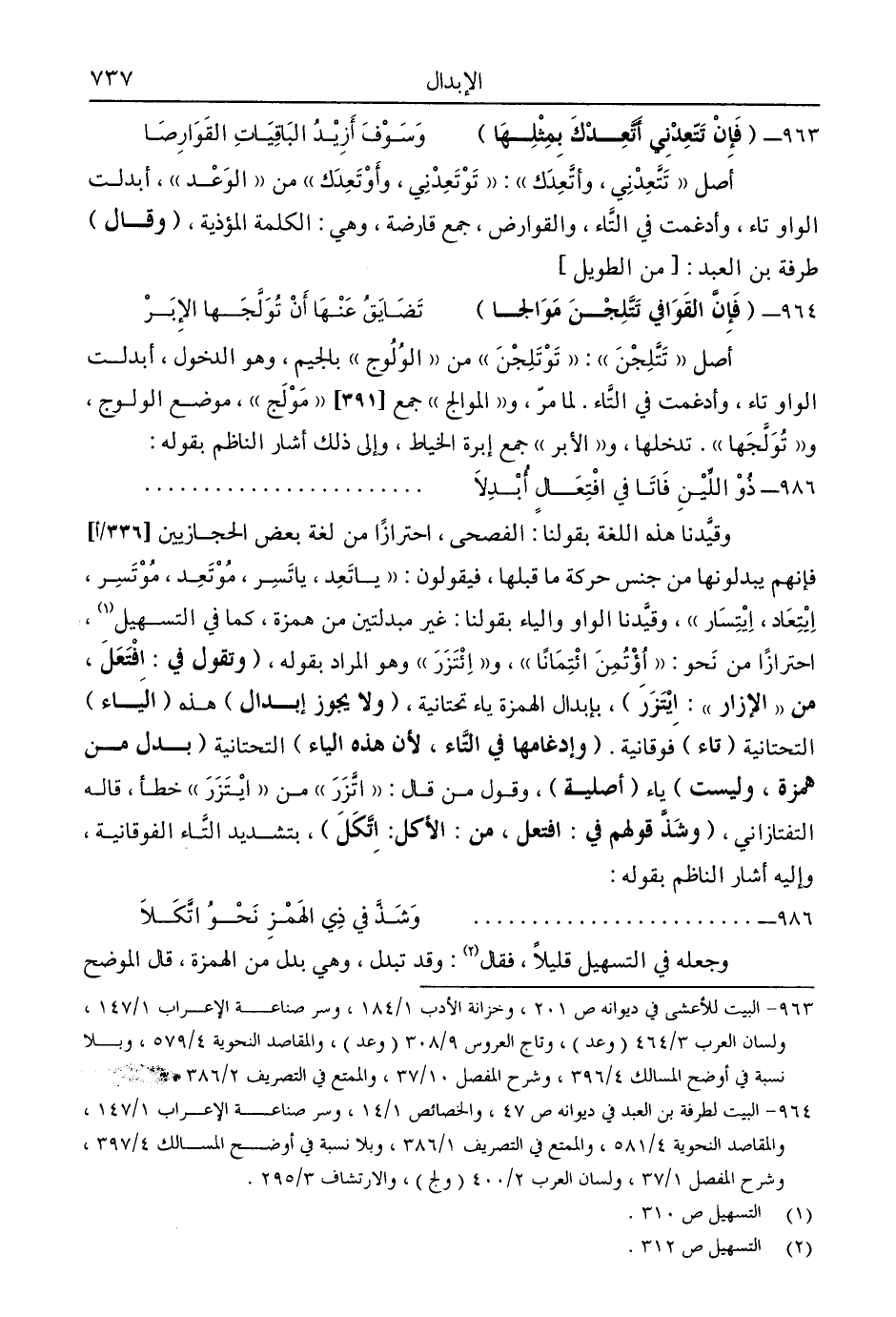 963- البيت للأعشى في ديوانه ص201، وخزانة الأدب 1/ 184، وسر صناعة الإعراب 1/ 147، ولسان العرب 3/ 464 "وعد"؛ وتاج العروس 9/ 380 "وعد" والمقاصد النحوية 4/ 579، وبلا نسبة في أوضح المسالك 4/ 396، وشرح المفصل 10/ 37، والممتع في التصريف 2/ 386.