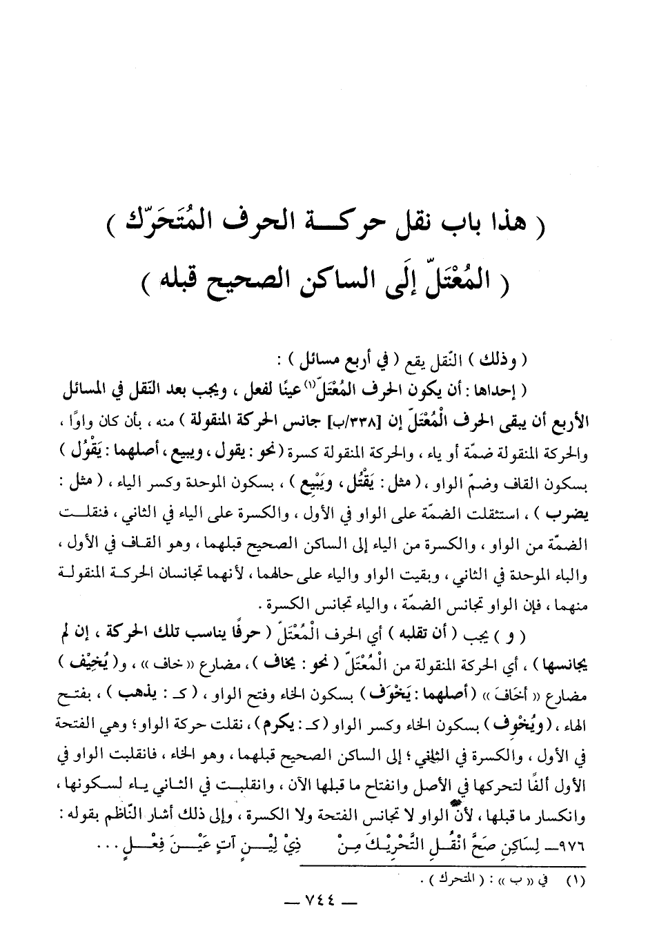 باب نقل حركة الحرف المتحرك المعتل إلى الساكن الصحيح قبله: