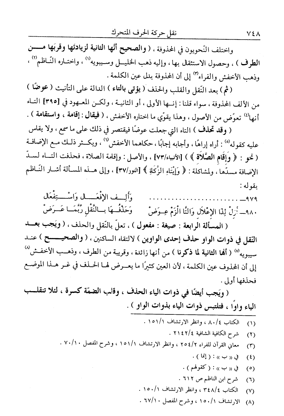 أزل لذا الإعلال والتا الزم عوض ... وحذفها بالنقل ربما عرض