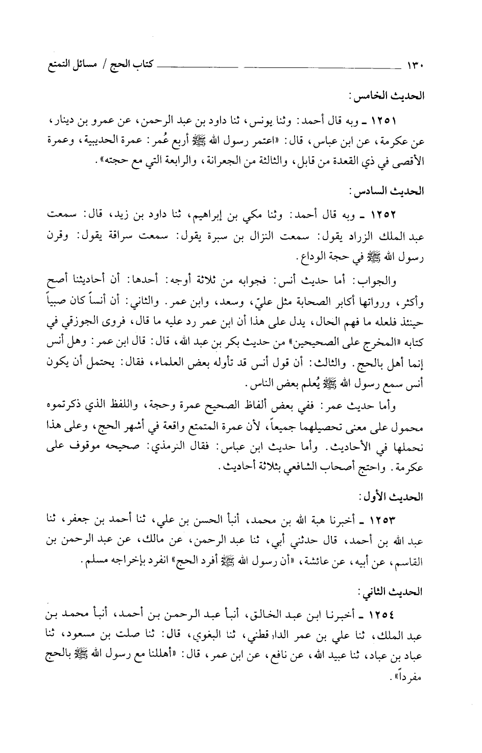 1254 - أَخْبَرَنَا ابْنُ عَبْدِ الْخَالِقِ أَنْبَأَ عَبْدُ الرَّحْمَنِ بْنُ أَحْمَدَ أَنْبَأَ مُحَمَّد بن عبد الْملك ثَنَا عَليّ بن عمر الدَّارَقُطْنِيّ ثَنَا الْبَغَوِيّ قَالَ ثَنَا صلت بن مَسْعُود ثَنَا عباد بن عباد ثَنَا عُبَيْدِ اللَّهِ عَنْ نَافِعٍ عَنِ ابْنِ عُمَرَ قَالَ أَهْلَلْنَا مَعَ رَسُولُ اللَّهِ صَلَّى اللَّهُ عَلَيْهِ وَسَلَّمَ بِالْحَجِّ مُفْرَدًا