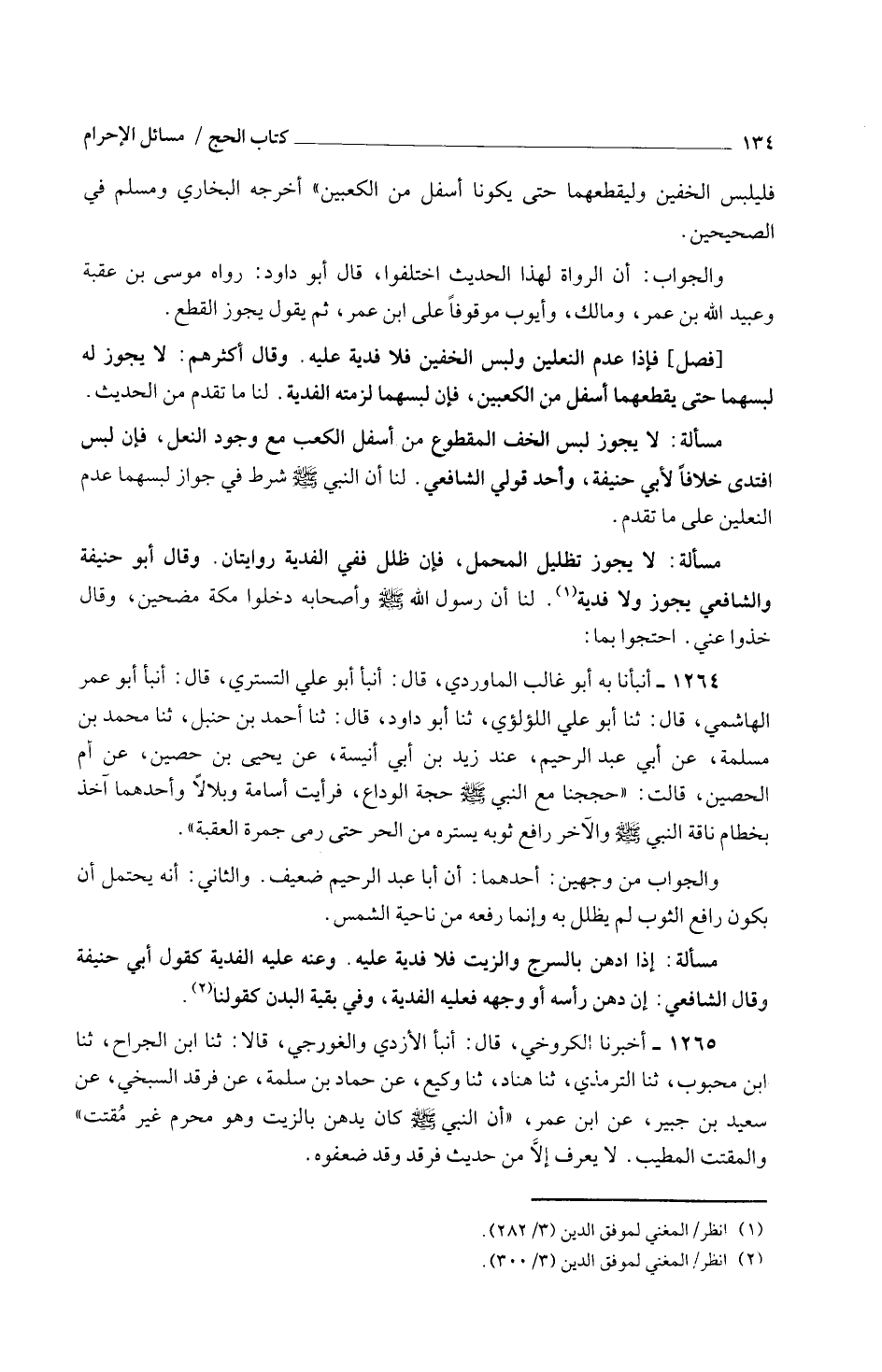 مَسْأَلَةٌ لَا يَجُوزُ لُبْسُ الْخُفِّ الْمَقْطُوعِ مِنْ أَسْفَلِ الْكَعْبِ مَعَ وُجُودِ النَّعْلِ فَإِنْ لَبِسَ افْتَدَى خِلَافًا لِأَبِي خنيفة وَأَحَد قَوْلَي الشَّافِعِيِّ لَنَا أَنَّ النَّبِيَّ صَلَّى اللَّهُ عَلَيْهِ وَسَلَّمَ شَرَطَ فِي جَوَازُ لُِبْسِهِمَا عَدَمَ النَّعْلَيْنِ عَلَى مَا تَقَدَّمَ