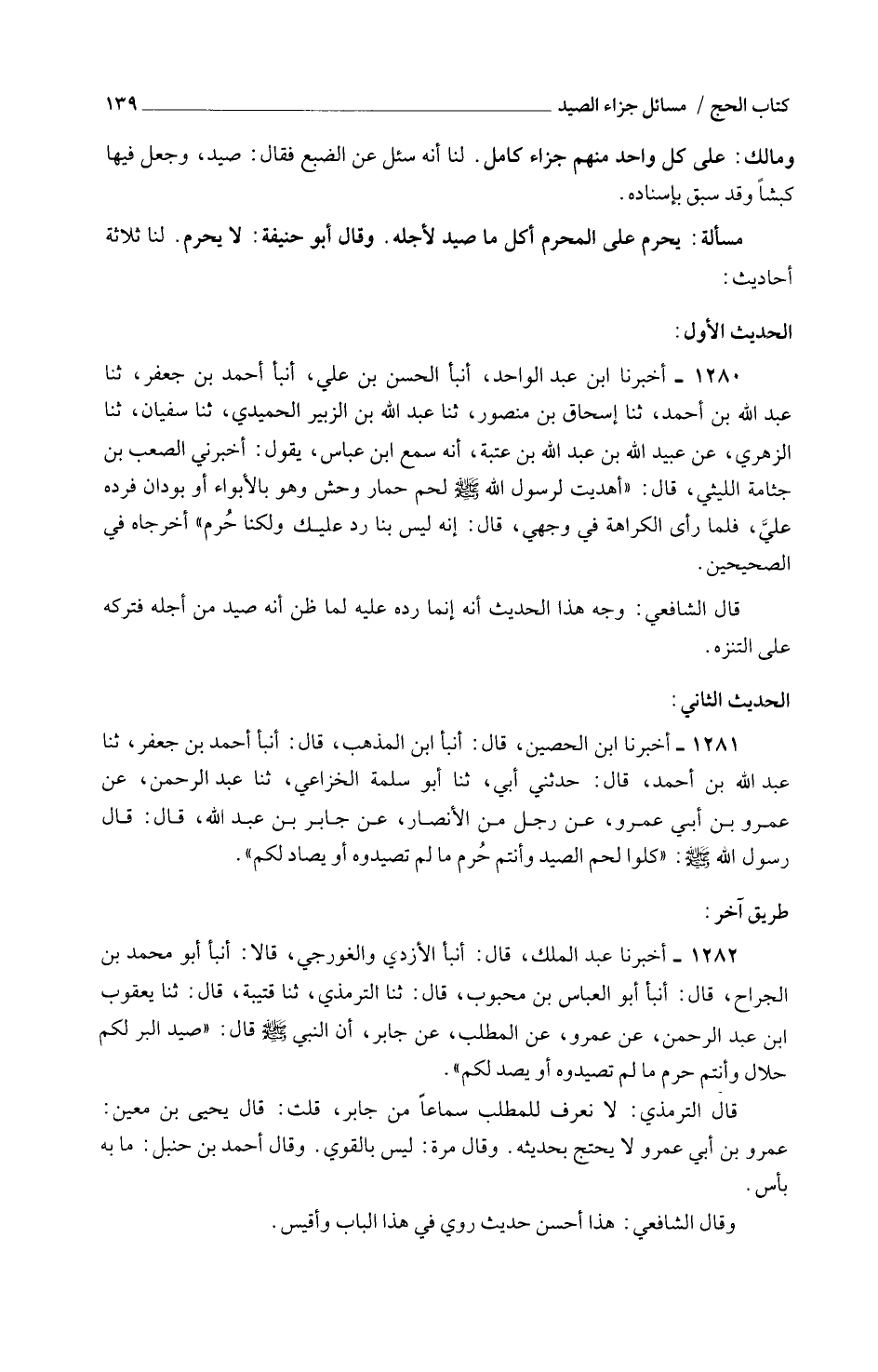 1282 - أَخْبَرَنَا عَبْدُ الْمَلِكِ قَالَ أَنْبَأَ الْأَزْدِيُّ والغورجِيُّ قَالَا أنبأ أَبُو مُحَمَّدِ بْنُ الْجَرَّاحِ قَالَ أنبأ أَبُو الْعَبَّاسِ بْنُ مَحْبُوبٍ قَالَ ثَنَا التِّرْمِذِيّ ثَنَا قُتَيْبَة قَالَ ثَنَا يَعْقُوب ابْن عَبْدِ الرَّحْمَنِ عَنْ عَمْرٍو عَنِ الْمُطِّلِبِِ عَنْ جَابِرٍ أَنّ النَّبِيَّ صَلَّى اللَّهُ عَلَيْهِ وَسَلَّمَ قَالَ صَيْدُ الْبَرِّ لَكُمْ حَلَالٌ وَأَنْتُمْ مَا لَمْ تَصِيدُوهُ أَوْ يُصَدْ لَكُمْ