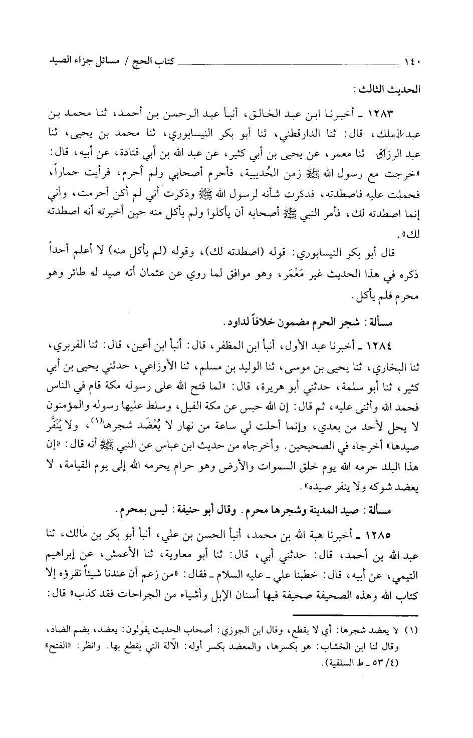 مَسْأَلَةٌ صَيْدُ الْمَدِينَةِ وَشَجَرُهَا مُحَرَّمٌ وَقَالَ أَبُو حَنِيفَةَ لَيْسَ بِمُحَرَّمٍ