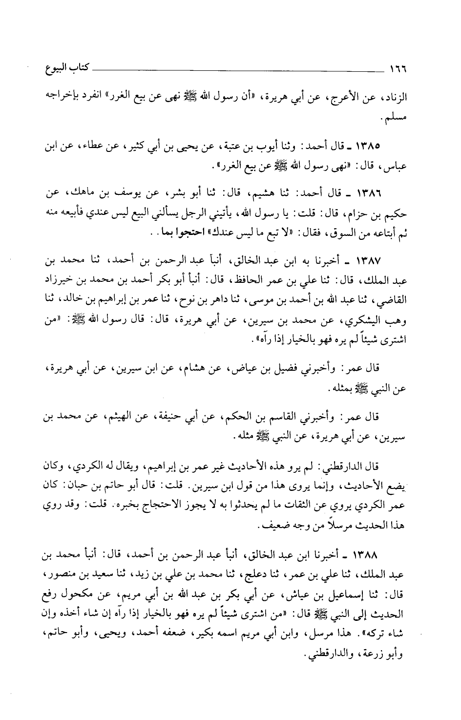 1386 - قَالَ أَحْمد ثَنَا هشيم قَالَ ثَنَا أَبُو بِشْرٍ عَنْ يُوسُفَ بْنِ مَاهِكٍ عَنْ حَكِيمِ بْنِ حِزَامٍ قَالَ قلت يارسول اللَّهِ يَأْتِينِي الرَّجُلُ يَسْأَلُنِي الْبَيْعَ لَيْسَ عِنْدِي فَأَبِيعُهُ مِنْهُ ثُمَّ أَبْتَاعُهُ مِنَ السُّوقِ فَقَالَ لَا تَبِعْ مَا لَيْسَ عِنْدَكَ احْتَجُّوا بِمَا